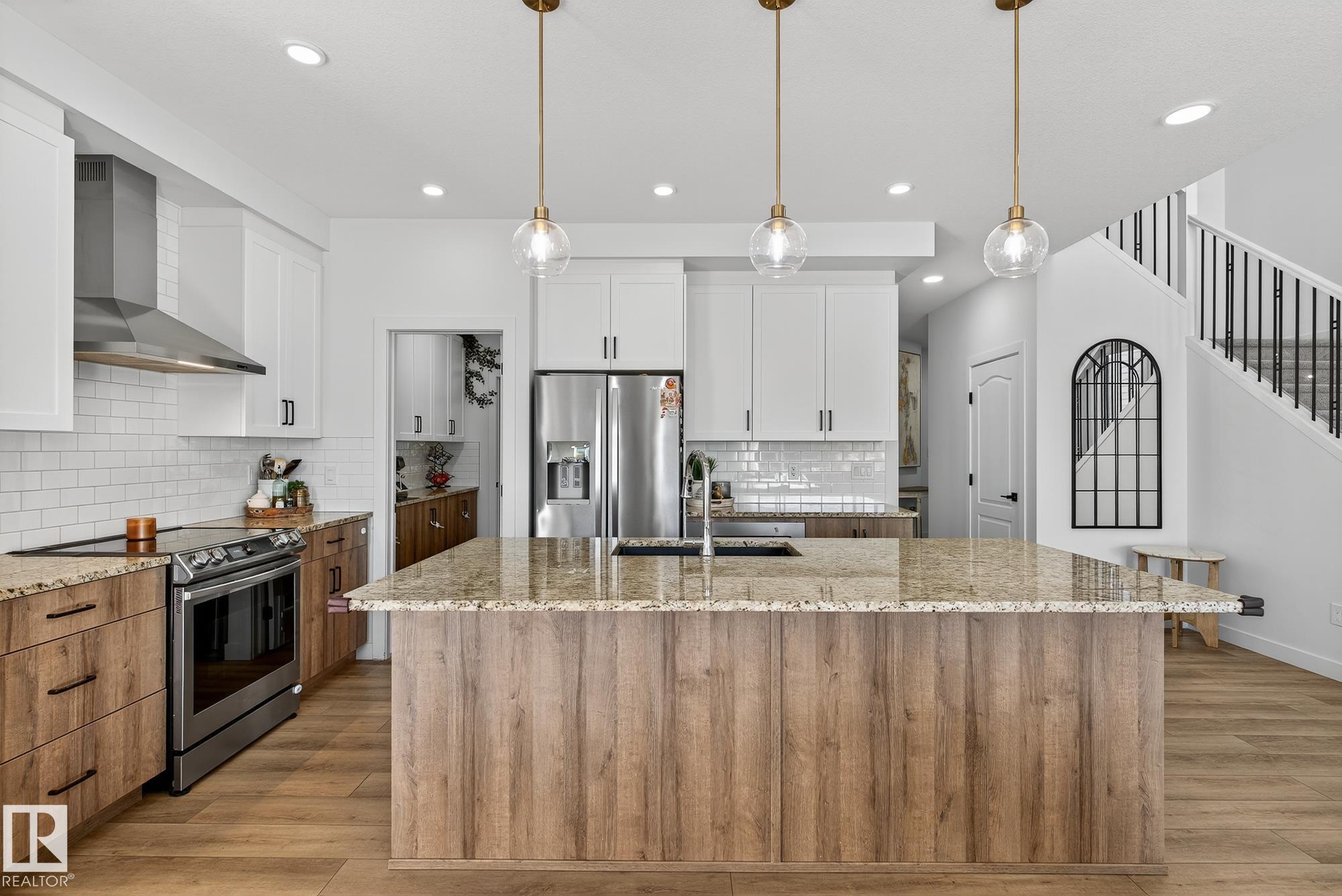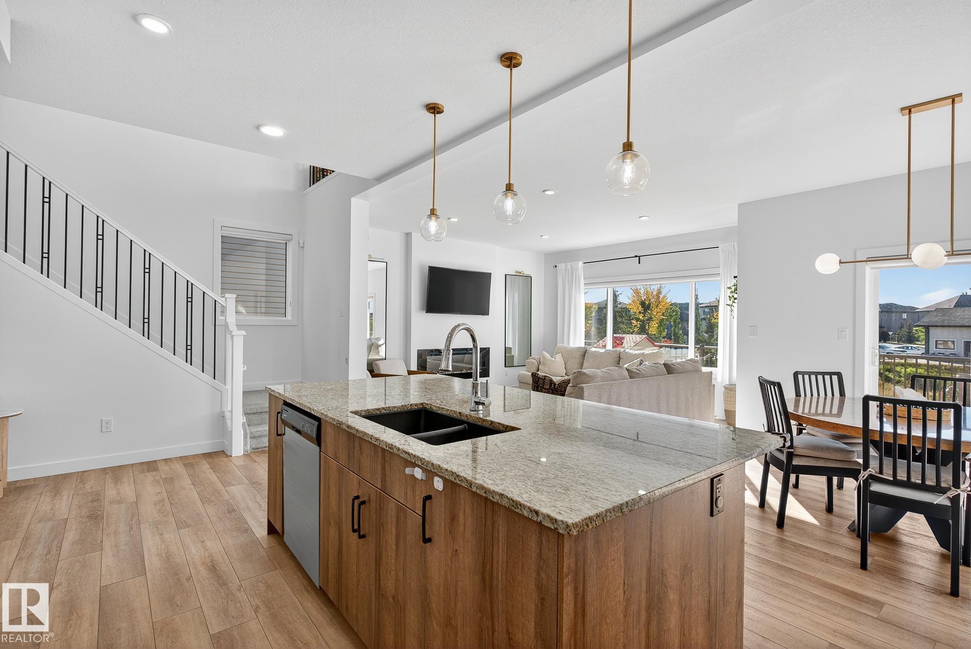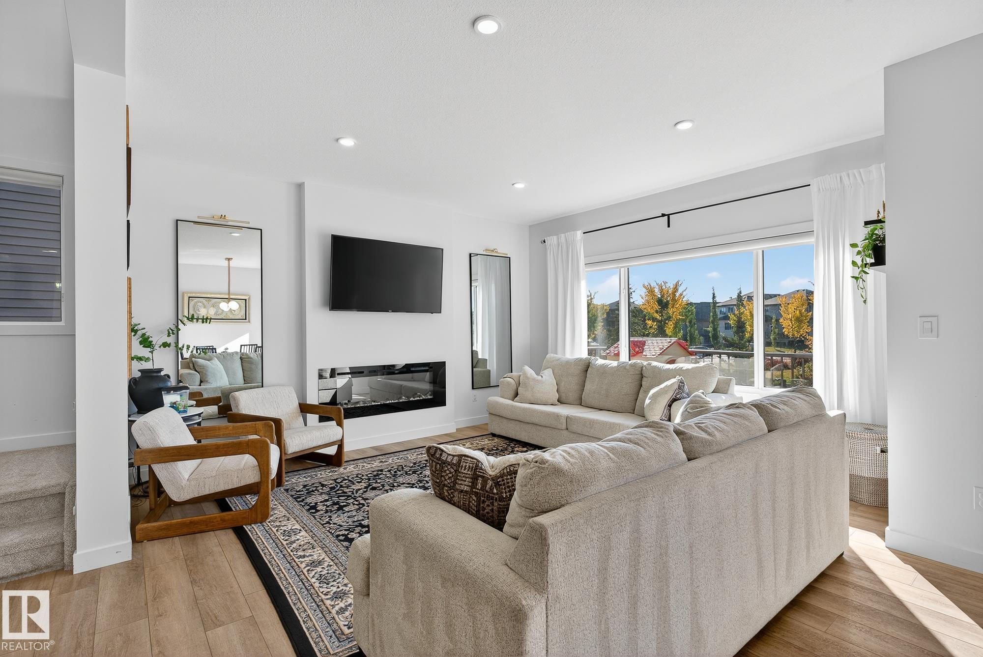 STUNNING EXECUTIVE WALKOUT! Perfectly positioned in prestigious Klarvatten, this spectacular 2-storey with a LEGAL SUITE exudes modern elegance & exceptional craftsmanship. Designed for luxury living, it features rich flooring, A/C, duel furnace, designer lighting & a stunning custom floor plan with architectural details. The chef's kitchen is a dream--premium 2-tone cabinetry, quartz counters, butler's pantry, island, breakfast bar, & top-of-the-line appliances. The open dining area leads to a massive deck with scenic walking trails, while the great room impresses with large windows & a sleek linear fireplace. A versatile office/bedroom, elegant bath, & custom mudroom complete the main level. Upstairs offers a stylish bonus room, laundry, & 3 bedrooms including a serene primary suite & spa-inspired ensuite. The bright, luxury legal suite below features a modern white kitchen, quartz counters, w/out patio to a SOUTH backyard. HEATED o/s garage, huge driveway & pristine landscaping--TRULY A TURN KEY HOME! MLS®: E4461652 - Klarvatten 2 Storey $849,900