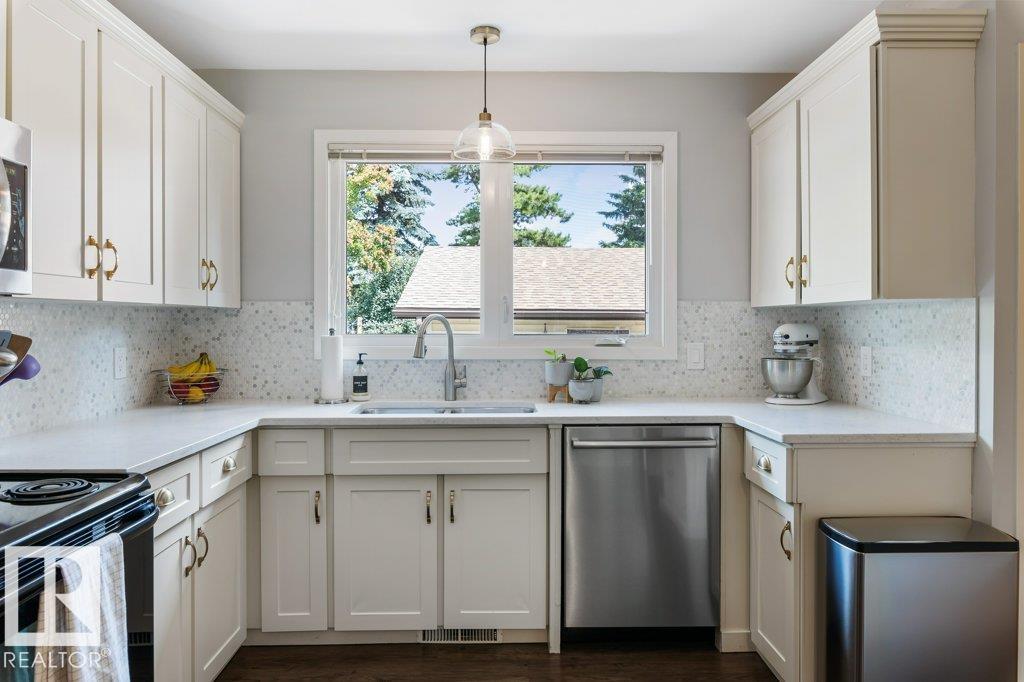 This beautifully maintained 1,229 sq. ft. bungalow shows true pride of ownership in a fabulous area of Forest Lawn. Offering 3+2 bedrooms and countless upgrades thru out. Including refaced kitchen cabinets, quartz counter tops, flooring, light fixtures fresh paint throughout, newer windows and shingles (2013), and a high-efficiency furnace (2010). The fully finished basement features 2 additional bedrooms and a renovated 4 pce. bath--perfect for guests or extended family. Outside, the front and back yards are meticulously landscaped with an abundance of flowers, berry trees, front veranda, newer composite deck, and a private fire pit area--your own backyard retreat! The oversized 24x28 double garage is ideal for carpenters, hobbyists, or anyone needing extra workspace. Located within walking distance to schools, parks, and a public swimming pool, this home offers comfort, style, and convenience in one desirable package. A must-see! MLS®: E4462523 - Forest Lawn (St. Albert) Bungalow $550,000
